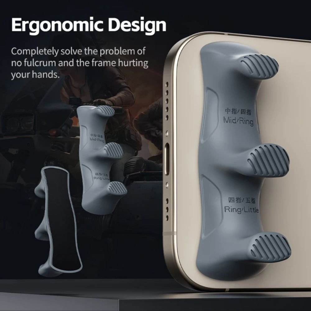 قبضة ألعاب مصممة بشكل مريح لليد، تساعد على تثبيت الهاتف بشكل أفضل وتقلل الضغط والتعب أثناء جلسات اللعب الطويلة. تصميمها الذكي يوفّر دعماً مثالياً للأصابع، مما يمنحك تحكماً أدق واستجابة أسرع أثناء اللعب.