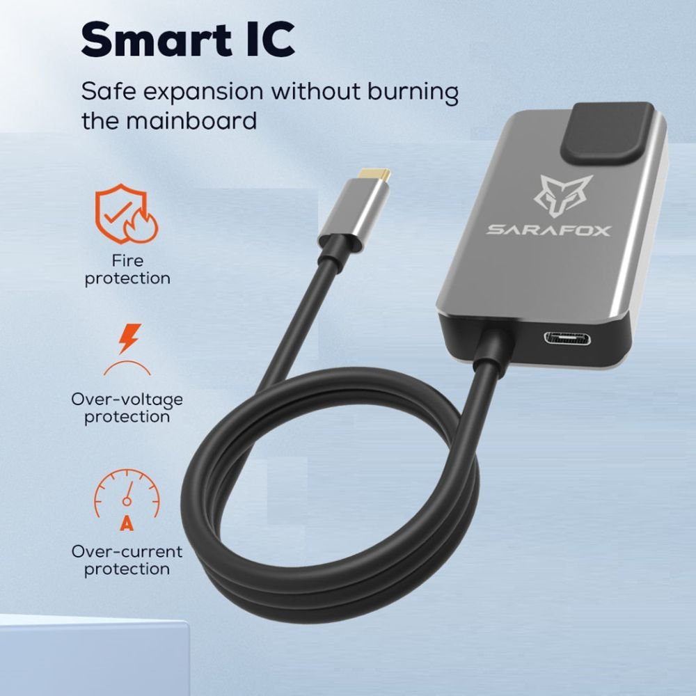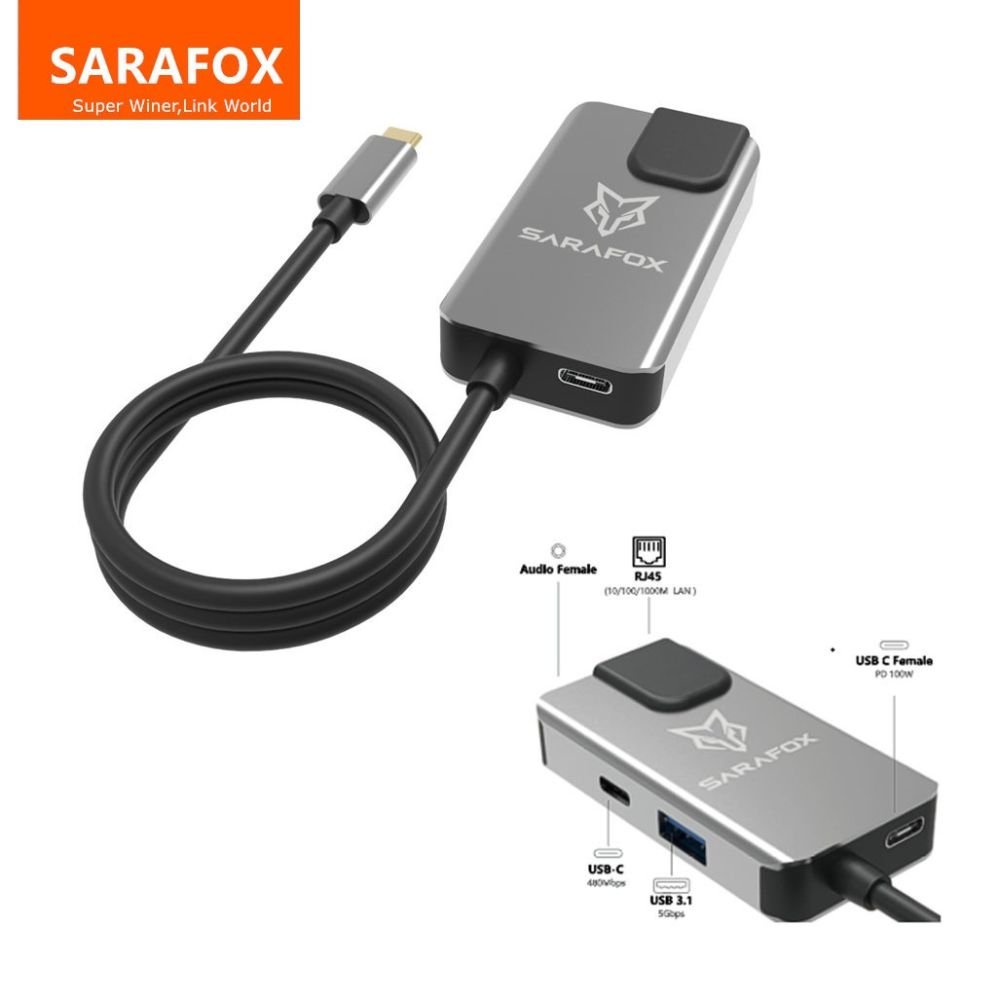 تم تصميم أدابتر سارا فوكس 5 في 1 ليمنحك جميع المنافذ التي تحتاجها في جهاز واحد صغير وعملي 💼، ليحوّل مدخل تايب سي إلى مركز توصيل متكامل يناسب العمل والألعاب والاستخدام اليومي.